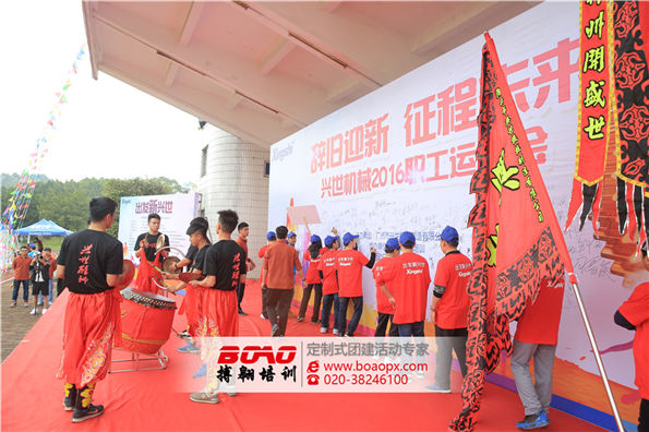 近眼一看,興世的軍旗威風(fēng)凜凜,遠(yuǎn)看大屏幕,一張十分有范的海報(bào)展示的是,辭舊迎新,征程未來,興世機(jī)械2016職工運(yùn)動(dòng)會(huì)。