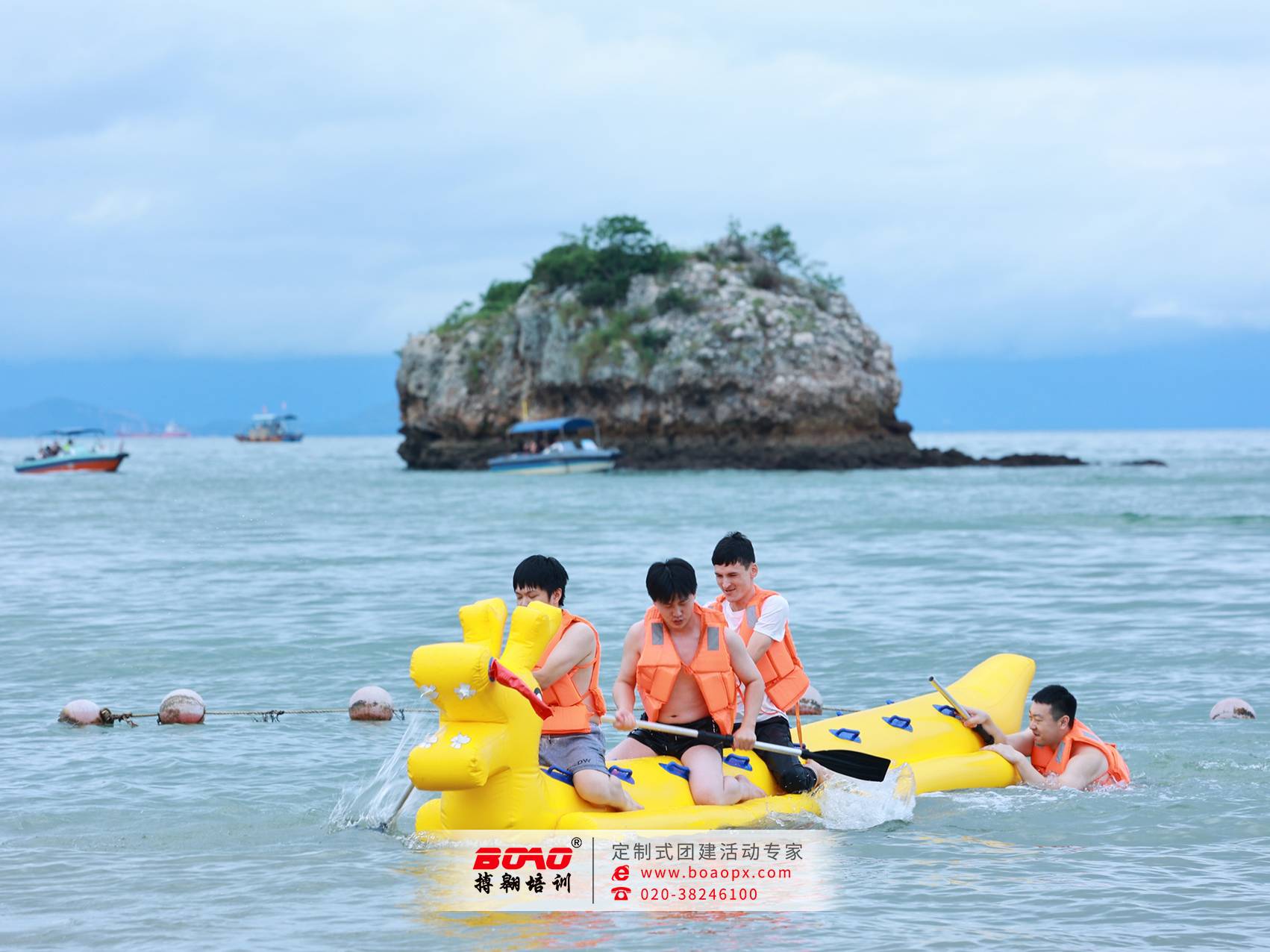 巽寮灣是著名的海濱旅游風(fēng)景區(qū):“全國最佳休閑名鎮(zhèn)”、“全國特色景觀旅游名鎮(zhèn)”、“廣東十大美麗海岸”、“國家4A級(jí)旅游景區(qū)”,素有“東方夏威夷”之美譽(yù)。那里的優(yōu)美風(fēng)景以奇聞名,海奇、灘奇、山奇、石奇、洞奇,八個(gè)海灘相連,沙灘晶瑩細(xì)軟,海水清澈,海底坡度平實(shí),百米內(nèi)水深不超過2米,特別是巽寮灣沙灘長(zhǎng)達(dá)3000多米,綠樹林帶環(huán)境,被譽(yù)為"天賜白金堤",是得天獨(dú)厚的天然海水浴場(chǎng)。在這夏日炎炎天氣,廣汽研究院和搏翱廣州拓展培訓(xùn)公司也攜手策劃了一場(chǎng)水上運(yùn)動(dòng)會(huì)。夏日的熱浪滾滾而來,巽寮灣體驗(yàn)式拓展基地一片清涼的天地,釋放你的活力與激情!本次團(tuán)建運(yùn)動(dòng)會(huì)也安排有刺激的水上龍舟、有趣的八仙過海、水上NBA投籃、水上拔河、熱血的沙灘排球,還有激情四溢的沙灘足球。